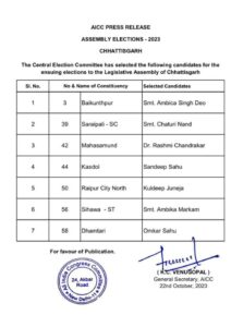 कांग्रेस ने जारी की अंतिम लिस्ट, सरायपाली विधायक का कटा टिकट, उत्तर से दोबारा कुलदीप सिंह जुनेजा!
