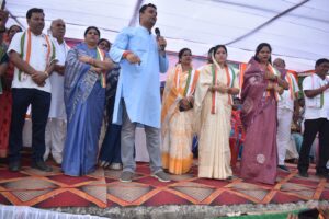 भूपेश बघेल के शासन की योजनाओं को बताया। शहिद नंद कुमार पटेल अमर रहे और कांग्रेस के नेताओं के जयकारे के साथ उत्तरी गणपत जांगड़े ने कहा शहिद नंद कुमार पटेल ने सारंगढ़ जिले के लिए संघर्ष किया आंदोलन में बैठे। आप सब की मांग को भूपेश बघेल की सरकार ने पूरा किया। मैंने अपने कार्यकाल में प्रतिदिन दौरा किया क्षेत्र में कोई भी कार्यक्रम हो मैं उसमें शामिल हुई आपके सुख-दुख में में शामिल हुई और आप सबने मुझे जो आशीर्वाद दिया था और मैं 55000 वोट से जीती थी जिसके बदौलत आज मैं विधायक बनी और इस मंच में खड़ी हूं। आप सब मेरा परिवार है एक बार फिर ऐसा आशीर्वाद और सहयोग मुझे चाहिए। 2 साल कोरोना काल में निकल गया 3 साल में सारंगढ़ जिला निर्माण सारंगढ़ 200 बिस्तर हॉस्पिटल सारंगढ़ में कन्या महाविद्यालय आत्मानंद स्कूल ग्रामीण अंचल की सड़क नगर पालिका में करोड़ों रुपए के विकास कार्य ग्रामीण क्षेत्रों में करोड़ों रुपए के विकास कार्य डैम पुल के करोड़ों रुपए के निर्माण कार्य और खास कर कांग्रेस की भूपेश सरकार ने किसानों का कर्ज माफी कर 20 एकड़ में धान खरीदी और धान के बोनस 2800 रुपए तक देने जैसे बहुमूल्य विकास कार्य किए हैं। कॉलेज के छात्रों को निशुल्क बस सेवा निशुल्क शिक्षा गोठान के माध्यम से महिलाओं का सशक्तिकरण रोजगार और युवा मितान क्लब के माध्यम से युवाओं को ₹100000 नगद राशि कृषि भूमि हीन मजदूरों को ₹10000 राशि जैसी कई लाभान्वित योजनाएं किसान मजदूर छात्र महिला बुजुर्ग और युवाओं को प्रदान किए हैं। आप सब कांग्रेस के कार्यकर्ता मेरी ताकत हो कांग्रेस की पहचान हो हर कठिन परिस्थितियों में आपने साथ दिया है। पंजा छाप में 17 नवंबर को मतदान कर कांग्रेस की विधायक और कांग्रेस की सरकार बनानी है। यही मेरी अपील है।बिलाईगढ़ विधान सभा कांग्रेस प्रत्याशी कविता प्राण लहरे ने कहा कि आपके बीच आज आपकी बेटी आई है यह मेरा प्रथम अवसर है भूपेश बघेल जी की विकास कार्य से जनता खुश है हर वर्ग खुश है। बिलाईगढ़ विधानसभा में नया नगर पंचायत कई तहसील आत्मानंद स्कूल करोड़ों रुपए के सड़के पुल पुलिया का विकास हुआ है। 15 साल हमने भाजपा के सरकार को देखा है भाजपा के सरकार ने सिर्फ और सिर्फ जनता को ठगा है कांग्रेस की सरकार विकास रूपी सरकार है। आप सभी कार्यकर्ताओं से अनुरोध है एक जुट होकर कांग्रेस के पक्ष में मतदान करें और कांग्रेस की सरकार बनाने में सहयोग प्रदान करें। जिसमें हर वर्ग का हित है। मंत्री उमेश नंद कुमार पटेल जी ने अपने सादगी भरे अंदाज में जनता को हाथ हिलाते हुए नमन किया और कहा की भूपेश बघेल जी की सरकार में किसानों के कर्ज माफी धान का बोनस 20 क्विंटल धान खरीदी युवा मितान क्लब गोठान का निर्माण महिला सशक्तिकरण स्वरोजगार छात्र-छात्राओं के लिए निशुल्