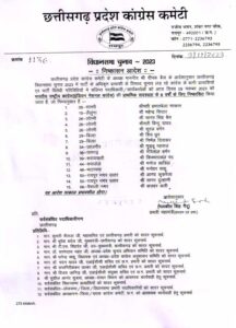 छत्तीसगढ़ प्रदेश कांग्रेस कमेटी के अध्यक्ष दीपक बेस्ट के आदेश के अनुसार छत्तीसगढ़ विधानसभा चुनाव 2023 में पार्टी के अधिकृत प्रत्याशियों के विरोध में चुनाव लड़ रहे कांग्रेस के बाकी प्रत्याशियों एवं पार्टी विरोधी गतिविधियों में संदीप पदाधिकारी एवं कार्यकर्ताओं को भारतीय राष्ट्रीय कांग्रेस की प्राथमिक सदस्यता से 6 वर्षों के लिए निष्कासित किया गया है जिसमें सरायपाली विधानसभा से पूर्व विधायक किस्मत लाल नंद भी शामिल हैं पूरे छत्तीसगढ़ में 15 लोगों को कांग्रेस पार्टी के प्राथमिक सदस्यता से 6 वर्षों के लिए निष्कासित कर दिया गया है।