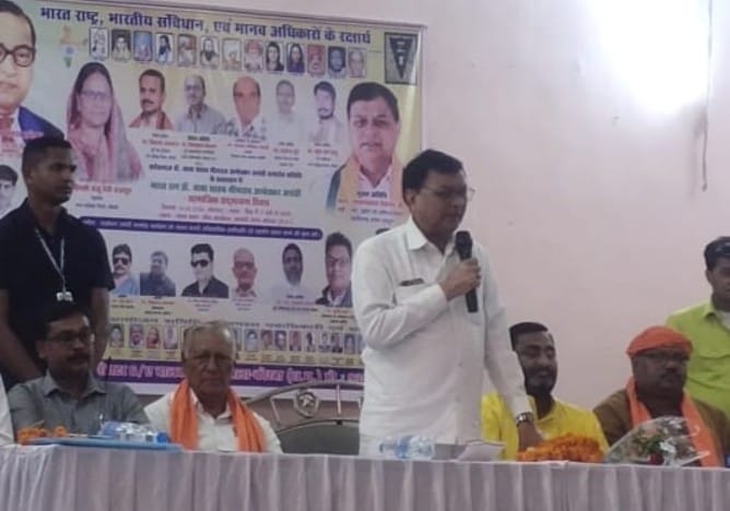 मंत्री देवांगन ने आगे कहा कि भारत का संविधान दुनिया के संविधानों से बड़ा और महान है जिससे भारत देश संचालित होता है।आज हमारे जैसे पिछड़े वर्ग और कितने सारे गरीब रहे नेता मंत्री ,मुख्य मंत्री और माननीय मोदी जी जैसे प्रधान मंत्री तक बने हुए हैं।यही कारण है कि मोदीजी हमेशा भारत के संविधान को माथे पर लगाते हुए सम्मान करते हैं।कार्यक्रम के अध्यक्ष नेता प्रतिपक्ष कृपाराम साहू ने कहा कि आज हम बाबा साहब अंबेडकर जी की जयंती को सामाजिक सदभाव के रूप में मना रहे हैं यह पूरे कार्यक्रम का सार है।बाबा साहब अंबेडकर का जीवन और संविधान भारत देश करोड़ों पिछड़े वर्गों, दलितों, आदिवादियों,महिलाओं और सभी वंचित वर्गों के लिए आगे बढ़ने की प्रेरणा देते रहेगा।कार्यक्रम में कोरबा अंचल के प्रतिष्ठित नागरिकों को माननीय मंत्री द्वारा राष्ट्रीय संयुक्त मोर्चा भारत के सम्मान पत्र वितरित किए गए जिनमें अंचल के गांधीवादी लोकप्रिय पत्रकार रहे जिनका हाल ही में दुखद देहांत हो गया स्वर्गीय सुरेश चंद्र रोहरा को मरणोपरांत कोरबा रत्न से सम्मानित किया गया।इनके साथ ही कोरबा हॉकर यूनियन के नेता विनोद सिंहा ,मान्यवर कांशीराम जी की दत्तक पुत्री के नाम से प्रचलित लक्ष्मीन दीदी,समाज सेविका पार्वती तिवारी,पदम सिंह चंदेल,लता साहू, आदि को संविधान सुरक्षा वीर के पुरस्कार से सम्मानित किया गया। समारोह मे बुढा देव सांस्कृतिक मंच द्वारा प्रेरणा गीतों का भी आयोजन किया गया।कार्यक्रम में बड़ी संख्या के मूलनिवासी मुक्ति मोर्चा ,भाजपा एवं सर्व समाज के अतिथि,पदाधिकारी, एवं कार्यकर्ता उपस्थित हुए थे जिनमें बालको की भाजपा नेत्री अर्चना,पार्षद बंधे,पार्षद कंवर मैडम,कुर्मी समाज के जिलाध्यक्ष अनिरुद्ध चंद्रा, मूलनिवासी मुक्ति मोर्चा के सलाहकार अहमद खान,आर पी आई ए के प्रदेश अध्यक्ष मंगलाराम घृतलहरे,भाजपा नेता रवि सोन, एड हेमलता साहू, समाज सेवी लोकेश साहू,कांति चौहान,तारा सोनी,मनहर लाठिया, शकुन ठाकुर,सचिव बलजीत कौर, पुष्पा कश्यप,निर्मल कसार, मांगों देवी,गंगा यादव,उमेदा बाई साव,सुनीता जांगड़े,परसराम मरकाम,लता जांगड़े, आर एस कश्यप ,छाया चौहान,लक्ष्मी सारथी,प्रियंका महिलांगे,महतारीन बाई जांगड़े,सविता पटेल, प्रदीप राठौर,कृष्ण देवी,फूला देवी आदि उपस्थित हुए।बड़ी संख्या में आयोजन समिति द्वारा बाबा साहब अंबेडकर की स्मृति में महिलाओं और दिव्यांगों को थालियों के वितरण मंत्री देवांगन के हाथों दिलाकर शुरुवात की गई। कई लोगों ने पहली बार ऐसी जयंती कार्यक्रम की प्रशंसा की अंत में आयोजन समिति के अध्यक्ष रामकृष्ण चौहान और संयोजक सुनील सुना ने सभी अतिथियों,कार्यक्रम के सहयोगियों और उपस्थित लोगों का शुक्रिया अदा किया ।