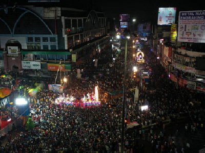 शारदा चौक से रात 9 बजे झांकी निकलने का सिलसिला शुरू हुआ और रात होते-होते सड़कों पर उन्हें देखने हुजूम उमड़ पड़ा। रातभर बारिश के बीच झांकियां अपनी रूट पर आगे बढ़ती रही और लोग डीजे-धुमाल की धुन में थिरकते रहे | भीड़ को नियंत्रित करने के लिए 3000 पुलिसकर्मी तैनात किये गए थे।