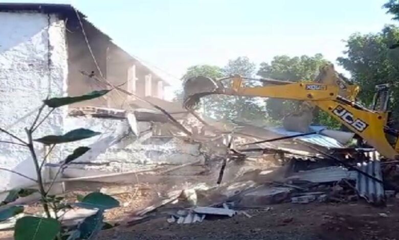 रतलाम के पास सड़क किनारे खेतों में बने अवैध ढाबों पर चले बुलडोजर