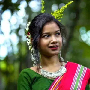 बालों में मोर और मुर्गे के पंख, हाथों में तीर गोदना, गले में सिक्कों की माला, हाथों में पापंरिक कड़ा एंठी पहने हुए बालोद पार्वती कोर्राम नजर आईं। गोंड आदिवासी समुदाय के ताल्लुक रखने वाली इस आदिवासी युवती ने बताया कि हमारे पूर्वज शिकारी रहे, हमारे सुदाय में तीरंदाज गोदना की परंपरा है। हम शरीर पर तीर के गोदना (टैटू) गर्व से बनाते हैं। यही हमारी पहचान है।