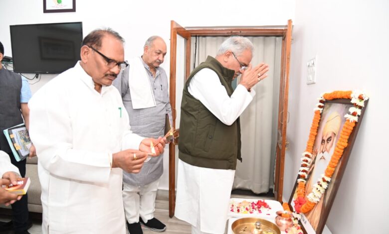 रायपुर। मुख्यमंत्री भूपेश बघेल ने आज यहाँ अपने निवास कार्यालय में गुरुनानक देव जी की जयंती पर उनके चित्र पर पुष्प अर्पित कर उन्हें नमन किया । इस अवसर पर कृषि मंत्री रविन्द्र चौबे और स्कूल शिक्षा मंत्री डॉ. प्रेमसाय सिंह भी उपस्थित थे । उन्होंने प्रदेशवासियों को विशेषकर सिख समुदाय के लोगों को गुरू नानक जयंती की बधाई और शुभकामनाएं दी ।