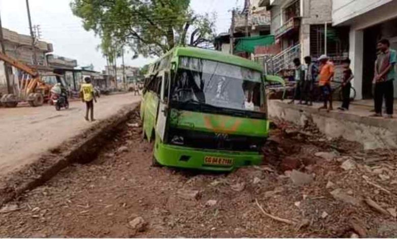 बताया जा रहा कि रायपुर धमतरी के बीच चलने वाली यादव ट्रेवल्स की मिनी बस का स्टेयरिंग फेल हो गया, जिससे बस सड़क चैड़ीकरण के लिए खोदे गए गड्ढे में जा गिरी और पलट गई. घटना स्थल के आसपास के लोगों ने तुरंत ही सभी यात्रियों को सुरक्षित निकाल लिया. वहीं क्रेन की मदद से बस को गड्ढे से निकाला गया.