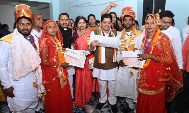 डॉ. डहरिया ने कहा कि प्रदेशवासियों के लिए गौरव की बात है कि हमारे मुख्यमंत्री भूपेश बघेल के मार्गदर्शन में महिला एवं बाल विकास विभाग द्वारा समाज के आर्थिक रूप से कमजोर वर्ग की बेटियों के लिए मुख्यमंत्री कन्या विवाह योजना संचालित की जा रही है। इस योजना के तहत् गरीब परिवार की बेटियों का गरिमामय तरीके से विधि-विधान के साथ सामूहिक विवाह सम्पन्न कराया जाता है। सामूहिक कन्या विवाह में 80 जोड़ों विवाह सम्पन्न कराया गया एवं शासन की ओर से मिलने वाली सहायता राशि का वितरण किया गया।