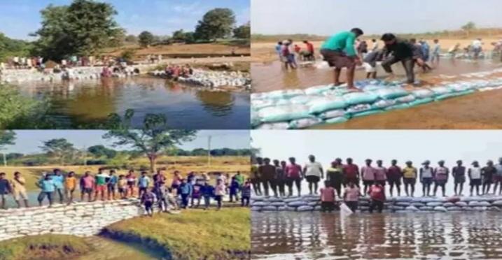 फिर वर्ष 2018 में इसकी शुरूआत तपकरा बोरियों में बालू भरकर कुछ ही घंटों में नदी पर बांध बना डाला।